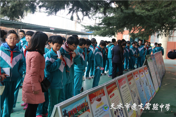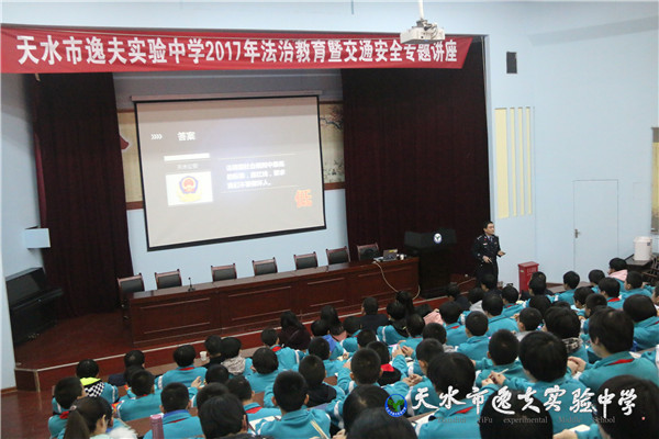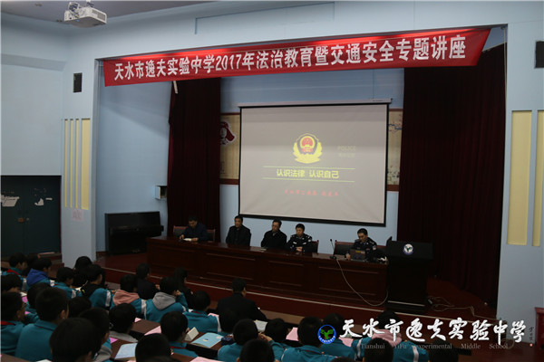 当天下午3时许,石马坪派出所及石马坪街道办事处相关人员来到学校,通过在校园内展出法治展板、发放法律知识资料、现场答疑解惑等形式,向全校师生进行普法宣传。4时许,学校请来天水市公安局法制支队执法监督大队长张建卓,专门向七年级同学做《法治教育暨交通安全知识》的法律讲座,就青少年违法犯罪、校园安全、交通安全,以及青少年如何知法、懂法、用法方面的法律知识进行讲解和释疑。张建卓队长的讲座引经据典,深入浅出,十分精彩,整个会场纪律良好,同学们一边认真聆听,一边记着笔记,不时爆发出雷鸣般的掌声。