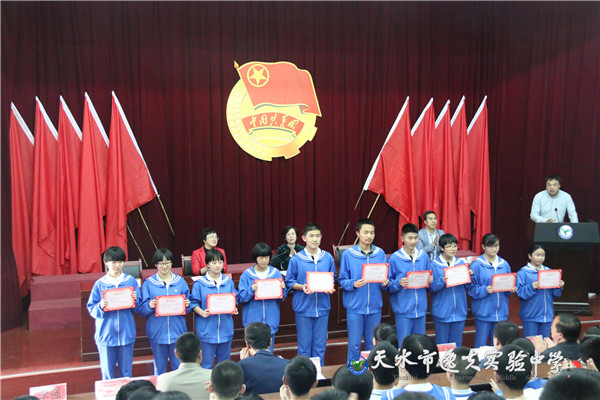 大会在高亢嘹亮的国歌声中拉开帷幕。首先,校团委组织委员蒋丹丹同志宣读新入团员名单。校团委组织委员张馨带领新团员在团旗下庄严宣誓,全体团员重温入团誓词,校团委宣传委员张莉同志宣读了表彰优秀团支部、优秀团员、优秀团干的决定。九年级五班杨梦昕同学代表优秀团员作了发言。校团委书记杨小刚同志在讲话中对新团员提出了希望和要求:要求新团员,树立正确的世界观、人生观、价值观,塑造爱党爱国、关心集体、尊敬师长、勤奋好学、团结互助、遵纪守法的优良品格。
