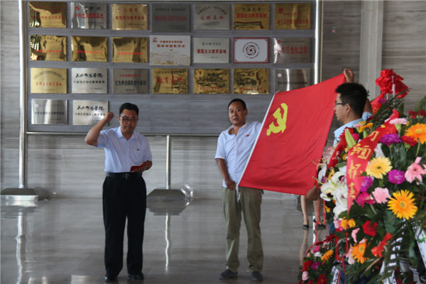 接着,在庄严肃穆的气氛中由副校长周旭忠同志领誓,全体党员面对鲜红党旗重温入党誓词。