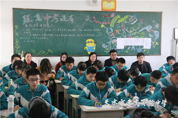 3月31日上午,甘谷县新兴中学教师在王记善校长的带领下一行43人来我校听课、研讨教育教学之策。
