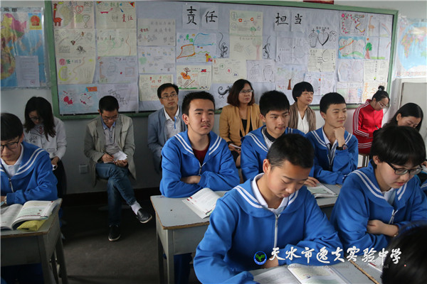 天水市教育局副局长、365bet游戏网站校长沈建玲,副校长周旭忠、计卫珍与陇西的各位领导、老师进行了座谈交流,并带领陇西渭州中学参观了我校各种功能室。(撰稿:教务处)