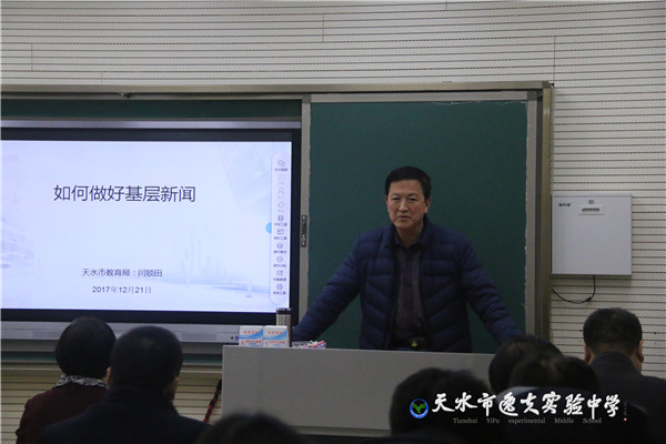 “基层通讯员身在基层、接近基层、了解基层,具有得天独厚的教育宣传优势。”12月21日下午,365bet游戏网站专门邀请天水市电教馆副馆长、资深基层教育宣传工作者闫锁田前来学校,做教育宣传专题讲座。学校领导、中层管理人员、各处室通讯联络员、语文教研组全体老师及青年教师共60多人认真聆听了讲座。