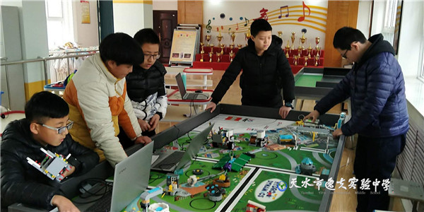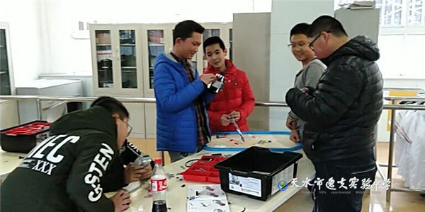我校机器人社团在去年12月初成立,现有教师教练员5名,学生社员30名。在师生共同努力下,利用社团活动时间和周末休息,对机器人搭建、编程、创意等知识进行学习。随后又参加了由天水市科学技术协会、天水市教育局举办的中国青少年机器人(甘肃赛区)竞赛天水市选拔赛,我校机器人社团初出茅庐,喜获晋级,将代表天水市参加省级比赛。