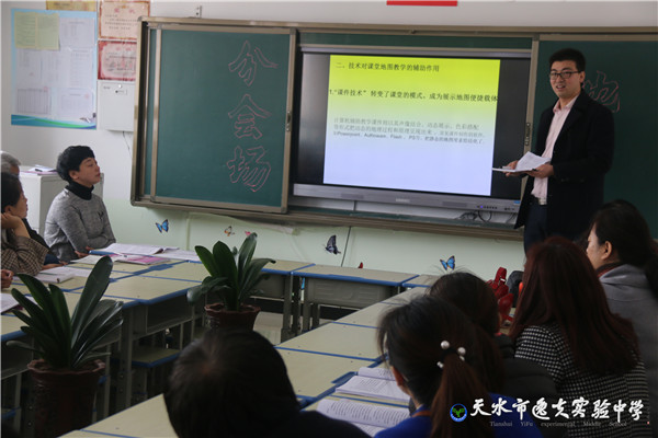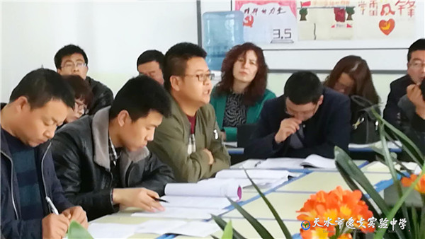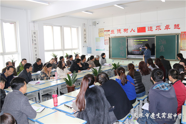 上午9:30,分会场活动开始,分别分学校管理组和语文、数学、英语、物理、化学、政史、地生、体育8个学科组交流研讨。管理组紧扣办学质量提升、教师队伍建设展开研讨。就像武山南峪中学校长杨卯成说的:“圣人曰:见贤思齐,逸夫初中校联谊活动我们年年参加,这个团队吸引了天水初中教育的排头兵,可谓群贤毕至。”听到消息赶来参加的市教育局师管科王超斌科长说:“四年里,联谊校走出了一条基于学校、在于学校、为了学校的联合教研之路,合作分享、合作共赢。”计卫珍副校长介绍了联谊校几年来的活动,她说”校本培训、同课异构、联考交流、共同教研,工作的确增加了很多,但我们在比学赶帮中实实在在收获了进步。”