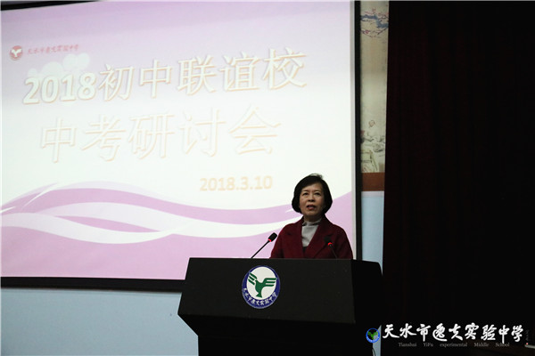 她接着说:“初中升学考试,既要为九年义务教育画句号,又要为高一级中学选拔提供依据,负有双重责任。今天,我们再次相聚,开展活动,就是期望能为我们每一所学校今年的决胜中考助力。同时,我也热切期望这次研讨会成为我们校际交流新的起点,开展更加深入广泛的交流,促进各学校发展,为新时代天水市的教育事业增砖添瓦!”