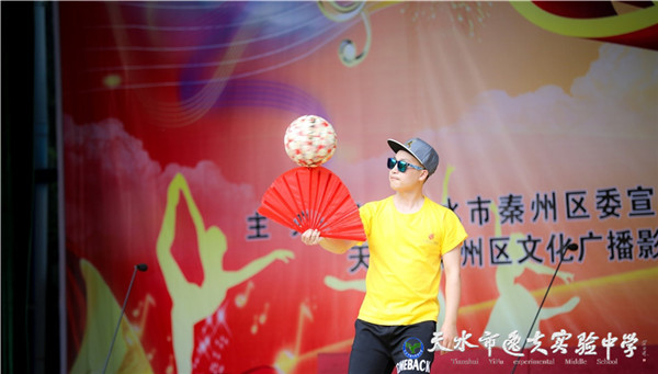 文艺演出中,由秦州区文化馆精心组织的传统艺术秦腔、手绢绝活表演、孙悟空表演秀、花式篮球、独唱等深受现场师生喜爱,掌声、喝彩声和尖叫声一浪高过一浪。由本校同学表演的合唱、健美操、陶笛、吟诵等节目也让与会专家眼前一亮。他们连连称赞,逸夫实验中学孩子们有着相当高的文化艺术底蕴和素养。 |