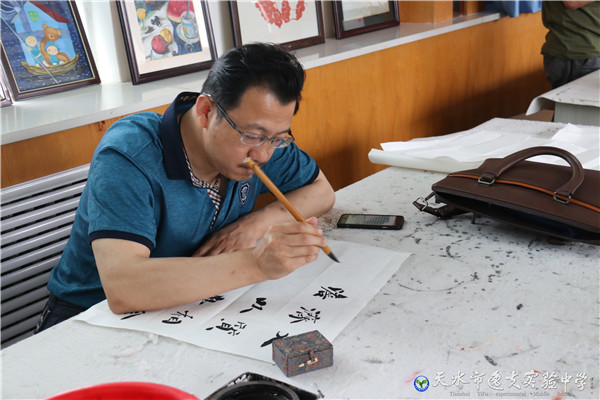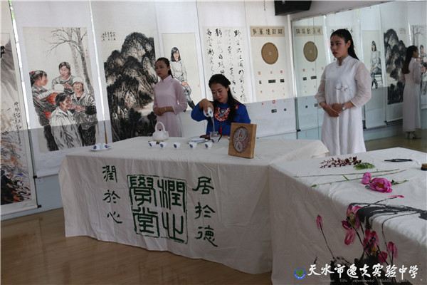 上午9时,天水市知名书画专家、陶泥艺术传承人、剪纸及民俗非遗专家、老艺术家等就已来到学校,向全校师生现场交流书画、剪纸、茶艺等高超技艺,展示精美的创意作品,并深入课堂,为学生做非遗知识讲座和剪纸艺术互动。这一系列传统文化活动,受到全体师生的欢迎和广泛好评。同学们一致称赞说享受了一顿可口的文化“大餐”。